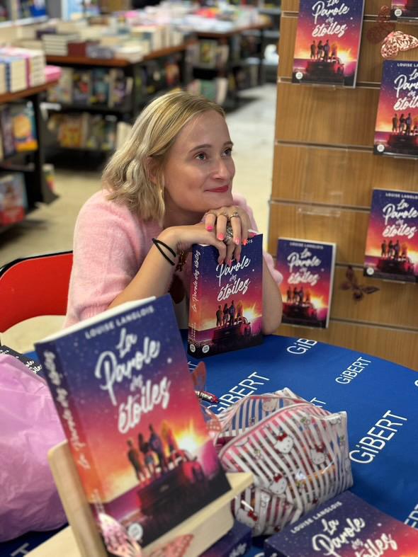 De base, je suis plutôt timide. Quand j’ai commencé les séances de dédicaces, j’avais vraiment très peur de ne pas être à l’aise. En fait, ça m’a vraiment aidé à être plus à l’aise avec les gens. J’ai beaucoup de lecteurs qui sont très timides, du coup c’est moi qui doit faire le pas vers eux. J’ai gagné en assurance et en relationnel. Le rythme des dédicaces, je le vis bien. Le plus fatiguant, ce sont les transports plus que la dédicace en elle-même. Évidemment, ça demande de la batterie sociale, surtout quand ce sont des salons. Pour autant, ça vaut le coup, je ne regrette pas du tout. Toute la semaine, je suis Louise la travailleuse et l’étudiante. Le samedi, je suis enfin Louise l’autrice, et c’est ce que je préfère être. C’est ma partie préférée du métier : être avec les lecteurs et voir que ce que je fais ne sert pas à rien. C’est une consécration. Nous, en tant qu’auteur, on est hyper dur envers nous-mêmes quand t’es toute seule devant ton texte et tu te dis c’est vraiment nul, nul, nul. Parfois quand t’es là dans les corrections, tu te dis « donc là dans trois mois les lecteurs ils auront ça entre les mains, c’est éclaté ». Et après tu arrives aux dédicaces, les gens te disent : « c’est mon livre préféré, ce livre m’a sauvé la vie ». Là, tu te dis ce que tu écris ça a du sens et de l’importance. Ça peut changer la vie de gens.